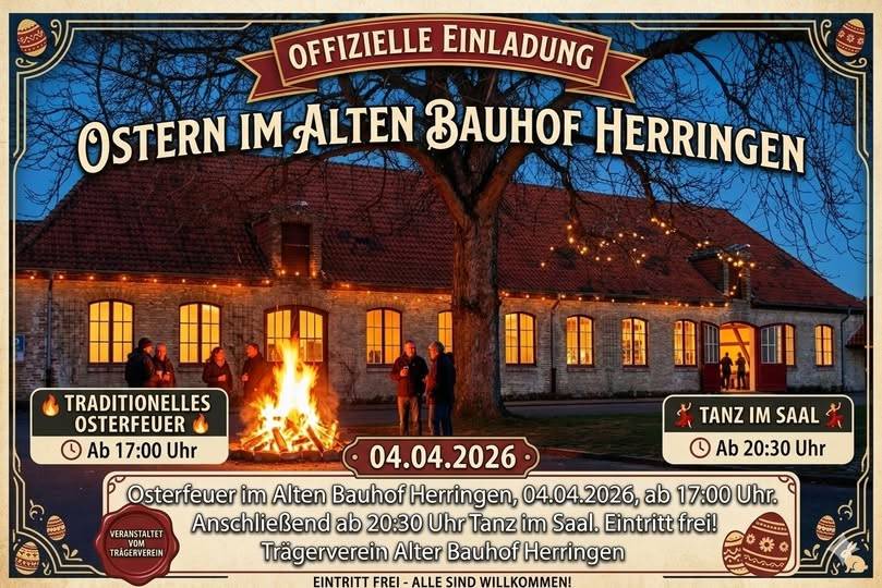 Auch in diesem Jahr lädt der Trägerverein Alter Bauhof Herringen e. V. herzlich zum traditionellen Osterfeuer ein.