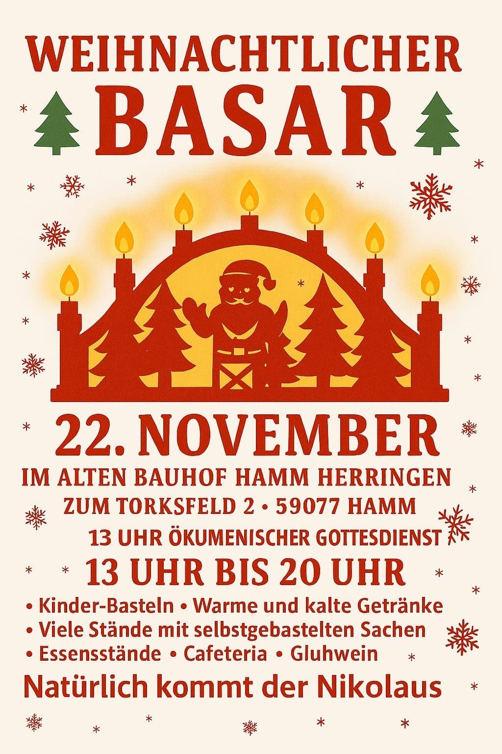 Der Trägerverein Alter Bauhof Herringen e.V. veranstaltet wieder einen weihnachtlichen Basar am 22. November 2025.
